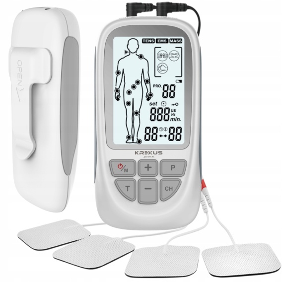 Stymulator KREXUS jest stymulatorem masażu z dwukanałowym wyjściem TENS i EMS. Posiada trzy podstawowe funkcje - TENS (przezskórna elektryczna stymulacja nerwów), EMS (elektroniczna stymulacja mięśni) i MASAŻ.